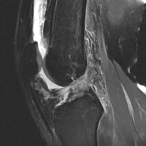 - Magnetic Resonance Imaging (MRI): MRI is the gold standard with imaging for diagnosing ACL tears. MRI provides a detailed view into the soft tissues of the knee including ligaments, cartilage, and menisci. This is important because ACL tears are often associated with injuries to other structures. Figure 2 shows an ACL tear on the MRI.