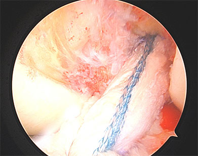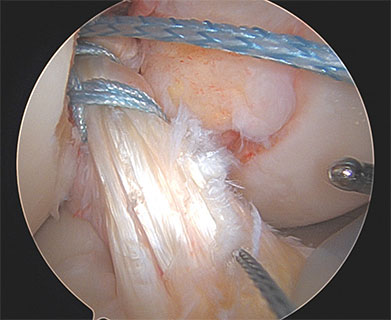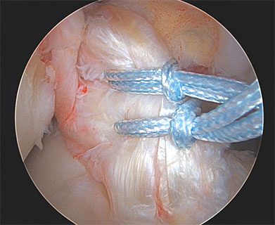 The anterior cruciate ligament (ACL) connects the thigh and shin bones and is critical in providing stability to the knee joint. The ACL is most commonly injured during sporting activities leading to anterior and rotatory instability of the knee. The primary function of the ACL is to prevent the tibia (shin bone) from sliding out in front of the femur (thigh bone) and provides rotational stability to the knee. ACL tears are most often managed by reconstruction. That is, the torn tissue is removed with a shaver and a new ACL (autograft or allograft) is inserted into the knee. However, recently there has been a resurgence of interest in primary repair of the ACL in select patients.